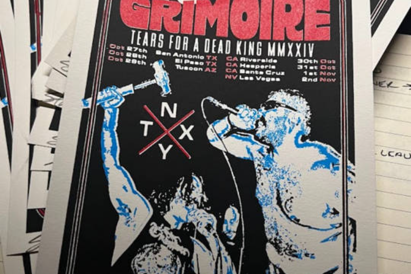 Since we’re back, we can finally reveal the “mystery” item in the Halloween bundle. These hand-screened tour flyers were designed by Michael Greylord and printed by our vocalist Stan. Each one is hand-numbered out of 30 and signed.